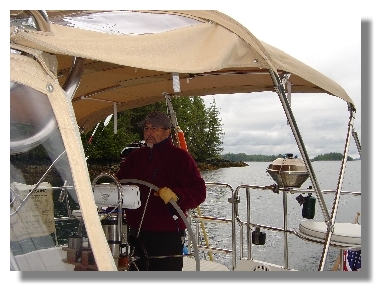 Rescue Cove – a nice little place to anchor. We drop the dinghy and go explore. Find lots of clams, all types. Nonnie and I don’t hesitate to easily dig up a bucket full. Back in the cove we are joined by a few familiar boats that are all traveling the same path as us, and a helicopter. YES, a HELICOPTER flies in and lands on this tiny spit of an island. Bruce scares the daylights out of us when he convinces us it is fish and game coming to haul Nonnie and I away for our pilfered bivalves. We guiltily slink them back over board. Truth be told we think he was lost. Probably good thing we didn’t eat them as we were in waters where the clams could be contaminated with neurotoxins that can leave you paralyzed. Oh well.
