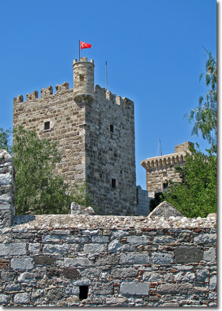 One of the best examples was The Castle of St. Peter in Bodrum. Built by the Knights of St. John in union with English, French, German and Italian troops, during the 15th and 16th centuries, the castle itself is still filled with examples of daily life, religious backgrounds and historical battles fought over the lands by each subsequent aggressor. Built over an old acropolis they incorporated the grounds and nearby materials from the Tomb of Mausolus, a governor of Halicarnasus. No coincidence that the common term mausoleum came from his tomb. The Ottoman empire overtook the castle in 1523 and added on their part to make it feel like home, such as the minaret attached to the corner of the church.