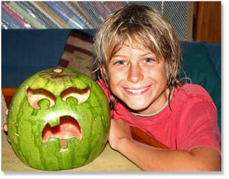 The Big boys played on the Rags & Thunders breaks, while the little ones splashed away at shore. Though we got rained out of having a bon fire, we still were able to celebrate Halloween with style. Scary movies, carved watermelons, and a dinghy ride boat to boat in costumes goes a long way! |