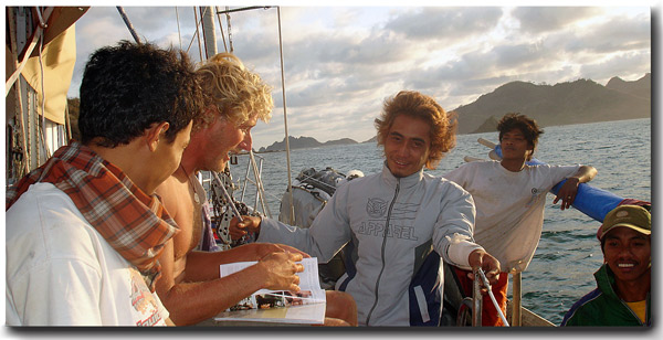 Our introduction to Indonesia, first we visited Nusa Tengarra. Collectively, the group of islands that is the south eastern ridge of Indonesia from Eastern Timor to Lombok. A quick 4 day sail from Darwin we found ourselves in the arms of Indonesia. We entered the country in the West Timor town of Kupang. The senses are easily overwhelmed to a newcomer in Indo. The sweet smell of cloves greet you long before you see them coming, the sounds of horns blaring from the shore are only a hint of the deafening experience to come and the trail of garbage leading you into the bay can be saddening. But the friendly smiles and greetings of "Hello Mister", sounds of call to prayer 5 times a day, and the tasty new foods make up for it all when you set foot on land.
