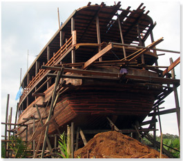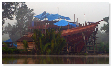 We had the opportunity to reunite with our pals from s/v Sea Kardinal. Frank, Jeni & Abby are currently living in Bali. As architects originally from S.F. they came across the chance to design a traditional old wooden sailboat for a friend. No small feat as it is 140 feet long! Seen above it is being built up a river in Kalimantan. We visited them in their traditional style Balinese home, scurried around the Denpasar Market where instead of shopping carts you get a woman following you around carrying a basket on her head. We had a special night in Sanur where the beach is lined from water line to restaurant stall with tables and chairs for you to dine on the freshly caught and cooked seafood. You pick it right out of the tank and eat it up. The boys even had the chance to ride some elephants with Abby!