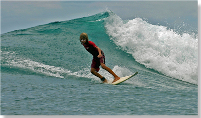 The Nembrala Resort, which sported a nice little pool for the kids to goof off in, was great to visit but the real fun was out in the water itself. We dove right in a got our feet wet. The area provides a variety of breaks that were great for moms, dads and kids alike, which kept us surfing morning, noon and night. What more can we say...