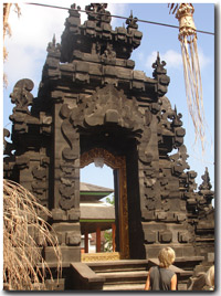 Also omnipresent are the temples or "pura's". Each village contains at least 3, one for puseh (origin), desa (village protection), dalem (temple of dead) each aligning toward the mountains, sea or the sunrise. Most families have their own just for their ancestors as well. Amazing stone carvings or cast concrete housings fit for their offerings of lavish designs.