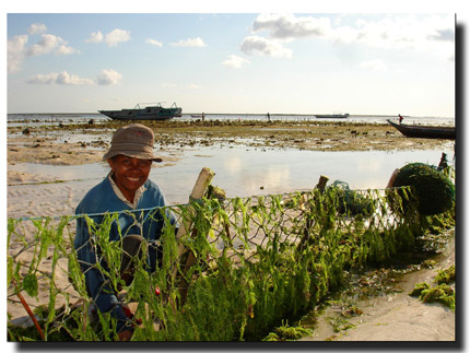 Our introduction to seaweed farming and a recreation playground. As the tide goes out, the women and children begin to collect any plump strands of seaweed that has washed upon shore. At low tide these rows of netting appear and the real work begins. For back breaking hours they collect the seaweed into nets that will later be dried and then shipped off. The primary uses of it are for cosmetic, food and pharmaceutical companies. Sadly, for all the hard work that gets put into it, they only receive very little money for each kg of dried seaweed. They thought we were hysterical as we tried to help collect the stuff. For just a few rupiah a day, you can stay in a loseman or home stay. Though rather primitive accommodations the hospitality is fantastic. |