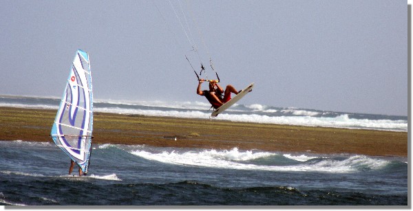 Bruce flying his kite and Bart from s/v Luna not far behind on the wind surf board.
