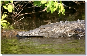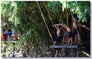 At the end of the river we found this fresh water swimming hole. Catfish swam under our feet and about 25 yards away was yet another crocodile. We enjoyed a nice lunch there and each took our turns on the rope swing. |