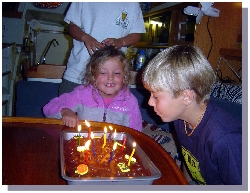 Tristan's birthday was next on the calendar. A neighboring cruiser, Fiona (from Poulsbo) stopped by to share in the celebration and some cake. |