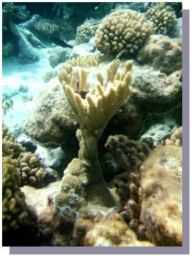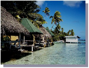 We spent one night and day anchored off the Tetamanu Village next to Tumakohua Pass. There is a small dive shop and Pension (guest house) that you can rent for vacations there. We met some nice Australian families vacationing there. We also had our first encounter with a Napoleon fish. They are enormous colorful blue fish with big bumps on their forehead. This one in particular liked to hang out near the local restaurant to be fed. They must feed him well as he looked to be at least 4-5 feet long. |